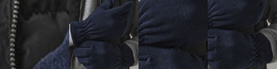 Outer: 100% polyester fleece. Polyester padding and lining. Pill resistant. Comfort stretch. Tear release finger cover. Elasticated wrist with extended wrist cover. Palm grip feature. Cut out label.