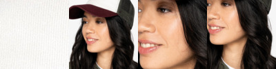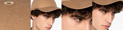 100% recycled polyester twill. 2 panel. Wide panel band. 8 stitch line brim. White reverse. Tag free.