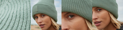 100% recycled polyester. Ribbed knit. Double layer knit. Wide cuffed design. Engineered crown. Tonal cotton twill patch for decoration (5 x 5cm). Tear out label.