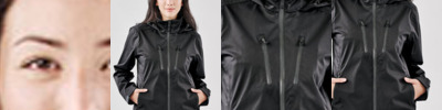 88% polyester/12% spandex. Four-way stretch. 310T polyester lining. DuPont™ padding. Waterproof 8000mm with taped seams. Breathable 3000g and windproof. Detachable hood with adjustable drawcord. Full length SBS zip with chin guard and inner zip guard. Right chest zip pocket. Inner pocket. Two warm lined front zip pockets. Concealed elastic storm cuffs. Tear release adjustable cuffs. Adjustable drawcord hem. Branded zip pulls. Access for decoration.
