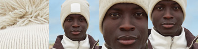 100% recycled polyester. Micro fleece lining. Double layer knit. Cuffed design. Self colour pom pom. Cotton twill patch for decoration (5 x 5cm). Tear out label.