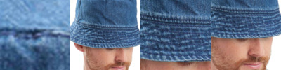 100% heavy washed cotton. Vintage style. Stitched ventilation eyelets. Offers protection against sunlight UPF50+. Tear out label.