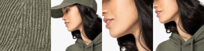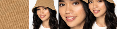 100% recycled nylon. Water repellent fabric. Chin strap with toggle adjuster. Offers protection against sunlight UPF50+. Tear out label.