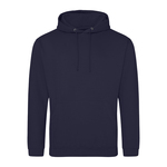 Soft cotton faced fabric. Brushed back fleece. Drop shoulder style. Double fabric hood. No drawcords to comply with EU regulations. Front pouch pocket.