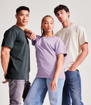 Fashion fit. Ribbed collar. Taped neck. Side seams. Twin needle stitching. Unbranded size label at neckline.